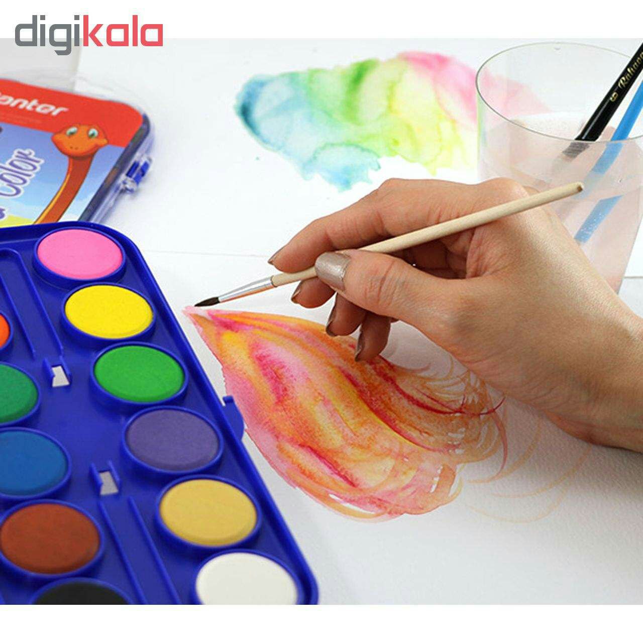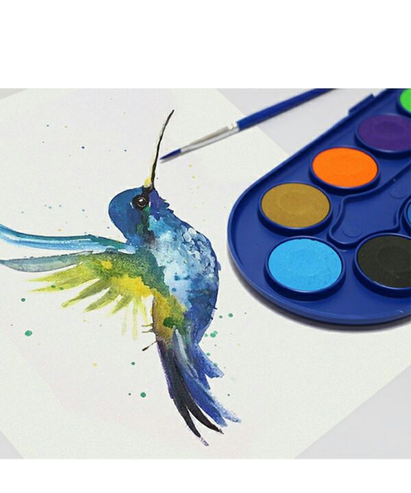– در ۱۲ رنگ زنده و شفاف با ماندگاری بالا – رنگ های قابل شستشو با آب – ترکیب راحت رنگ ها و خلق رنگهای جدید – طراحی بستهبندی جذاب برای کودکان به همراه قلمو با کیفیت بالا